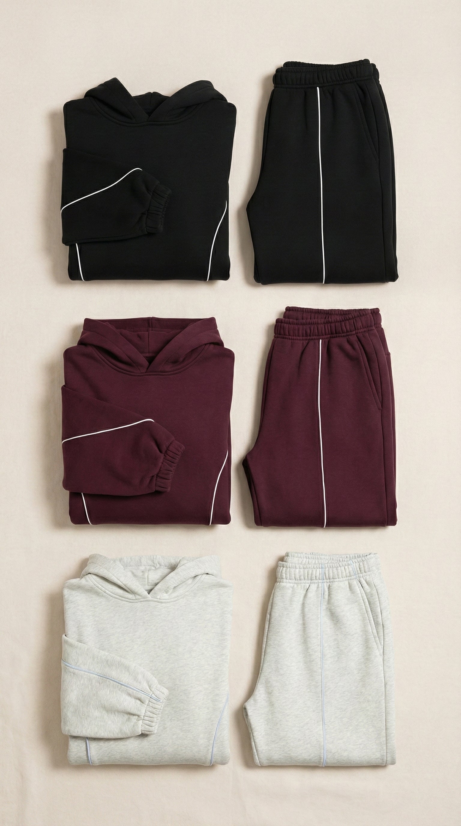 Un ensemble hoodie + pantalon à la coupe féminine, moderne et confortable.
